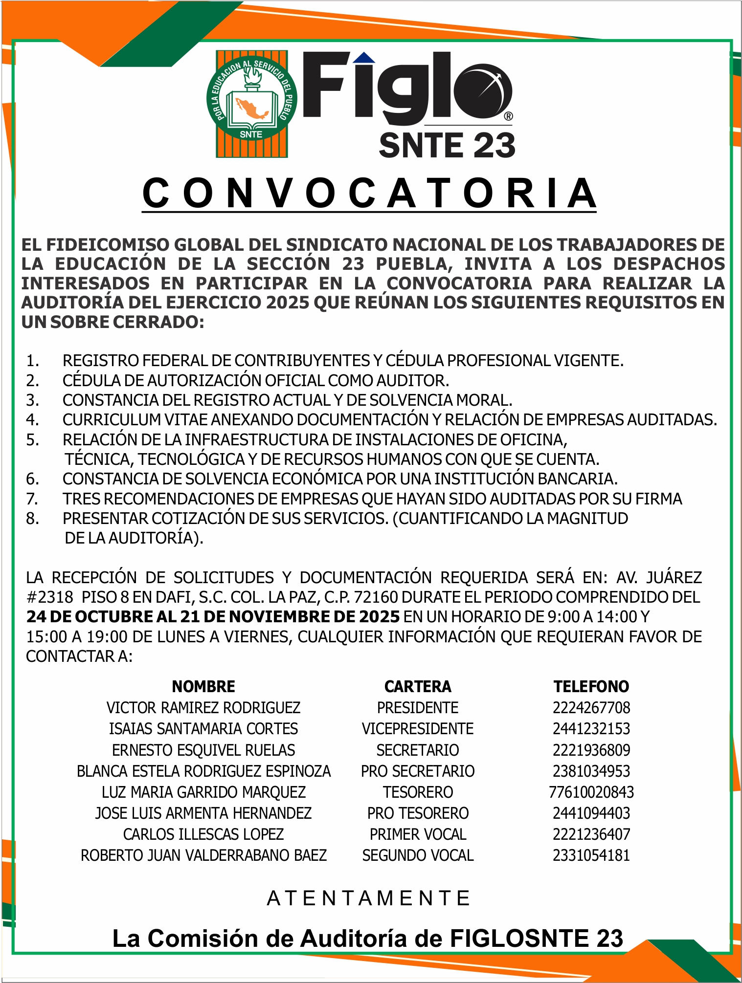 CONVOCATORIA A DESPACHOS AUDITORES 2025
